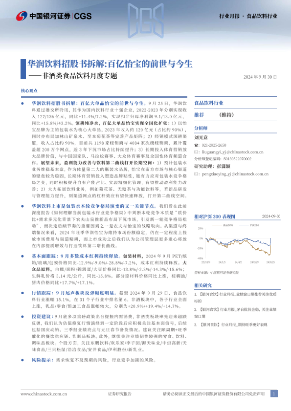 【银河证券】【20240930】20240930-中国银河-非酒类食品饮料月度专题:华润饮料招股书拆解:百亿怡宝的前世与今生-20页
