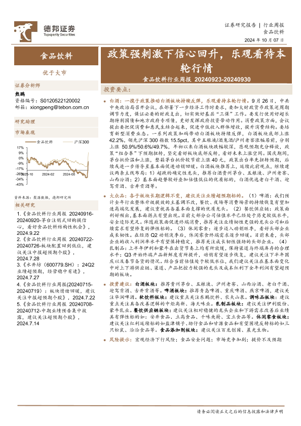 【德邦证券】【20241007】20241007-德邦证券-食品饮料行业周报:政策强刺激下信心回升,乐观看待本轮行情-14页