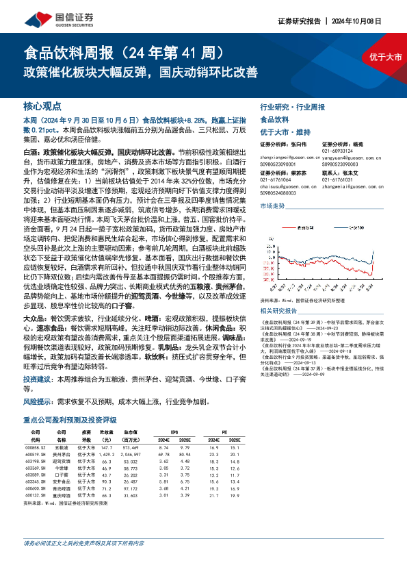 【国信证券】【20241008】20241008-国信证券-食品饮料周报(24年第41周):政策催化板块大幅反弹,国庆动销环比改善-14页