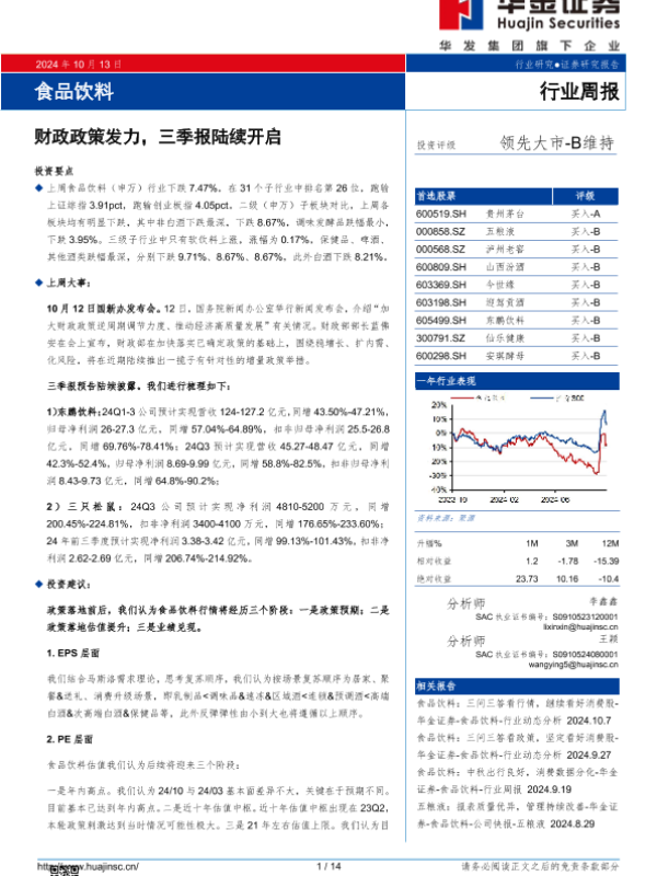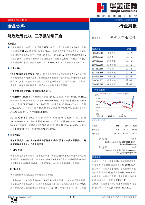 【华金证券】【20241013】食品饮料行业周报:财政政策发力,三季报陆续开启-14页