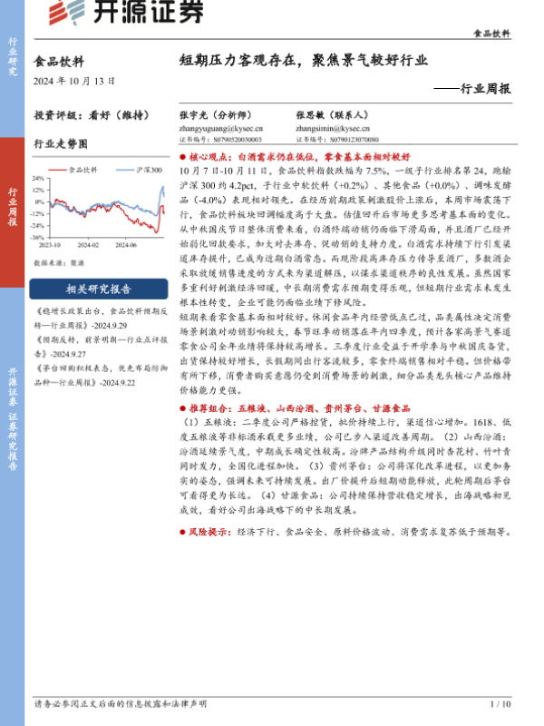 【开源证券】【20241013】食品饮料行业周报:短期压力客观存在,聚焦景气较好行业-10页