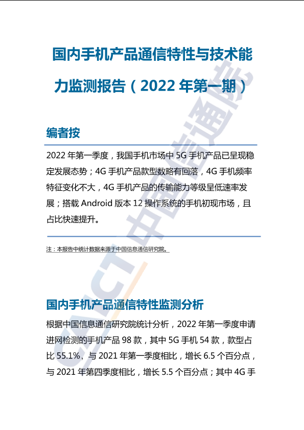 【中国信息通信研究院】【20220101】国内手机产品通信特性与技术能力监测报告(2022年第一期)-7页