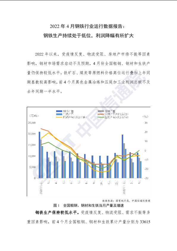 【中国信通院】【202204】2022年4月钢铁行业运行数据报告-4页