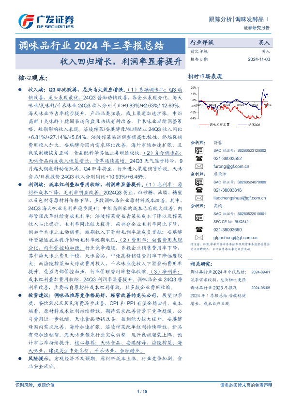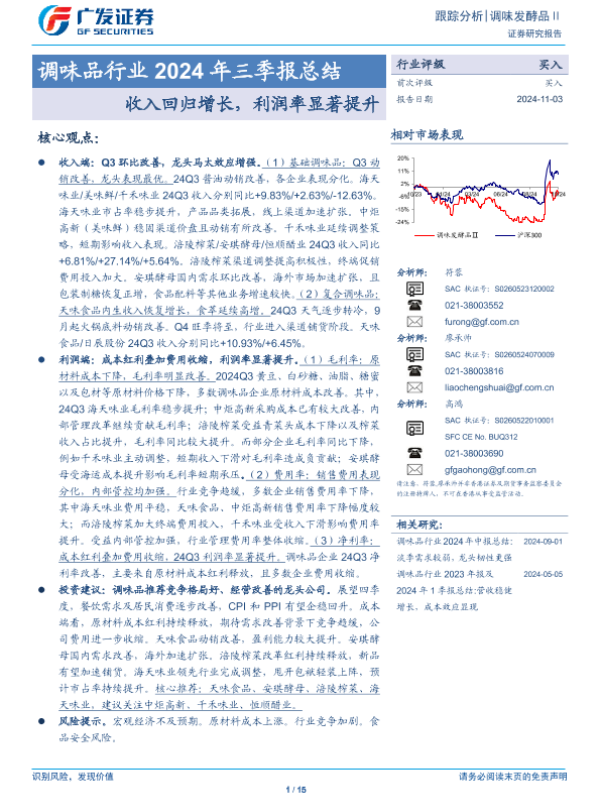 【广发证券】【20241103】调味品行业2024年三季报总结:收入回归增长,利润率显著提升-15页