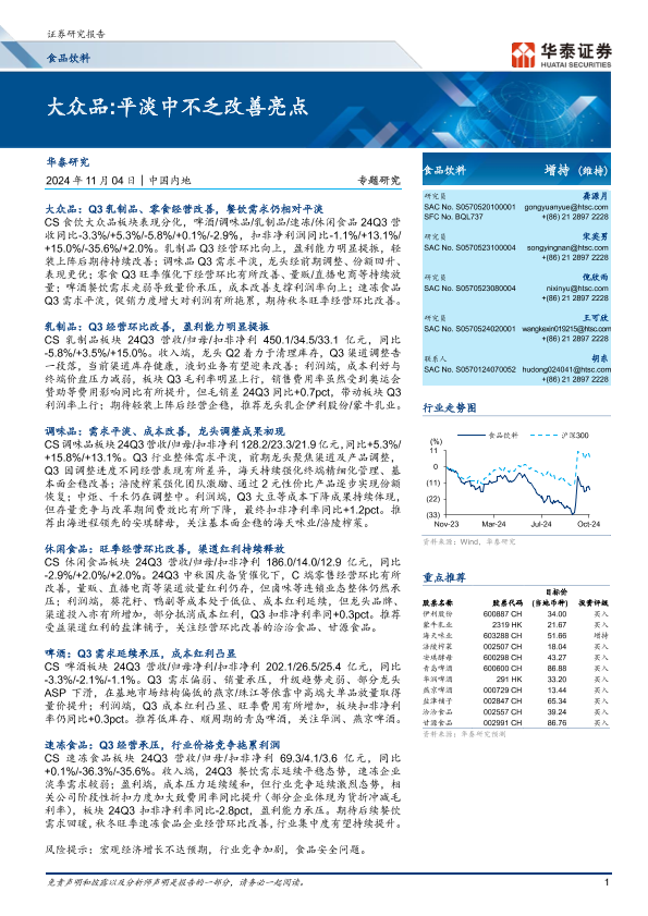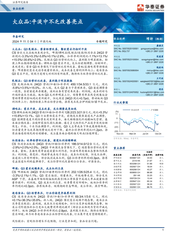 【华泰证券】【20241104】20241104-华泰证券-食品饮料专题研究:大众品:平淡中不乏改善亮点-20页