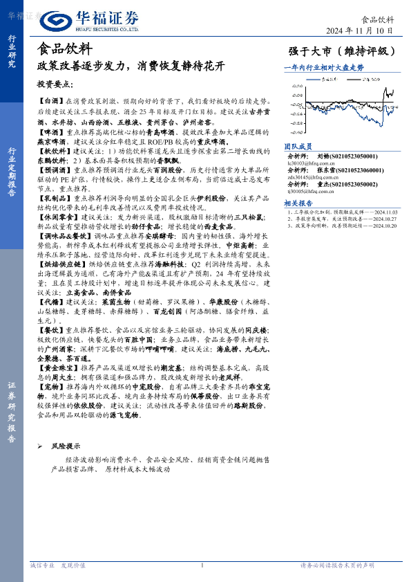 【华福证券】【20241110】20241110-华福证券-食品饮料行业定期报告:政策改善逐步发力,消费恢复静待花开-12页