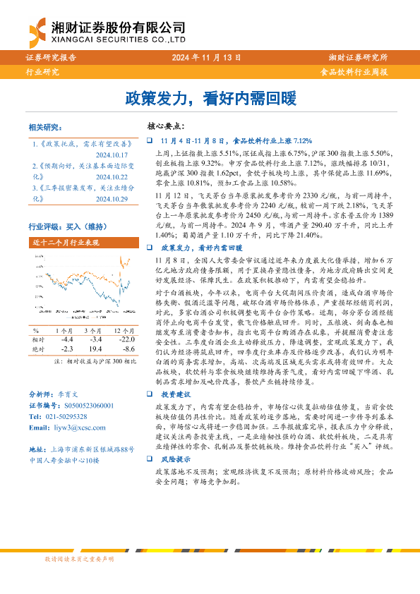 【湘财证券】【20241113】20241113-湘财证券-食品饮料行业周报:政策发力,看好内需回暖-10页