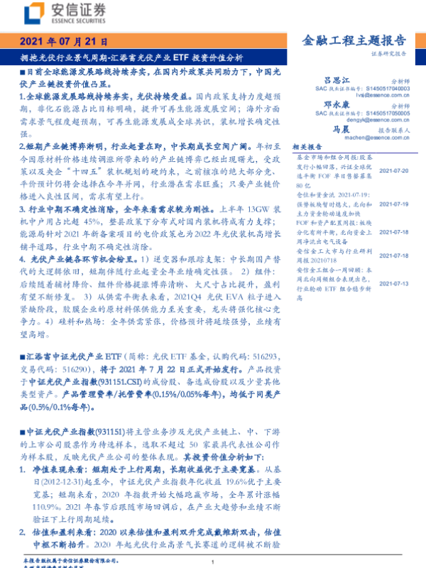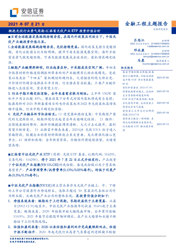【安信证券】【20210721】汇添富光伏产业ETF投资价值分析:拥抱光伏行业景气周期-23页