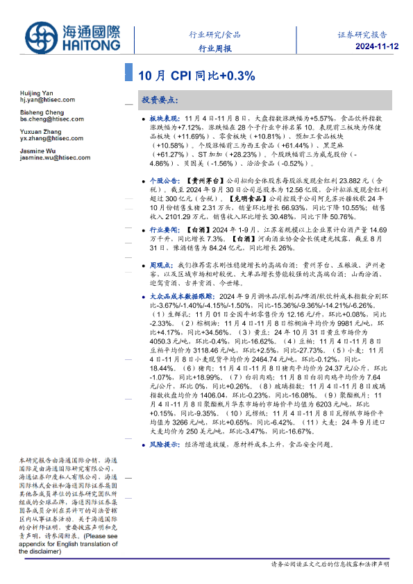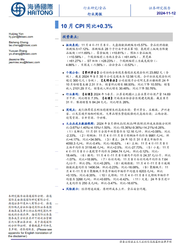 【海通国际】【20241112】20241112-海通国际-食品行业周报:10月CPI同比+0.3%-22页