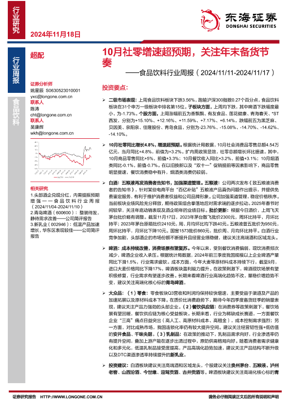 【东海证券】【20241118】20241118-东海证券-食品饮料行业周报:10月社零增速超预期,关注年末备货节奏-11页