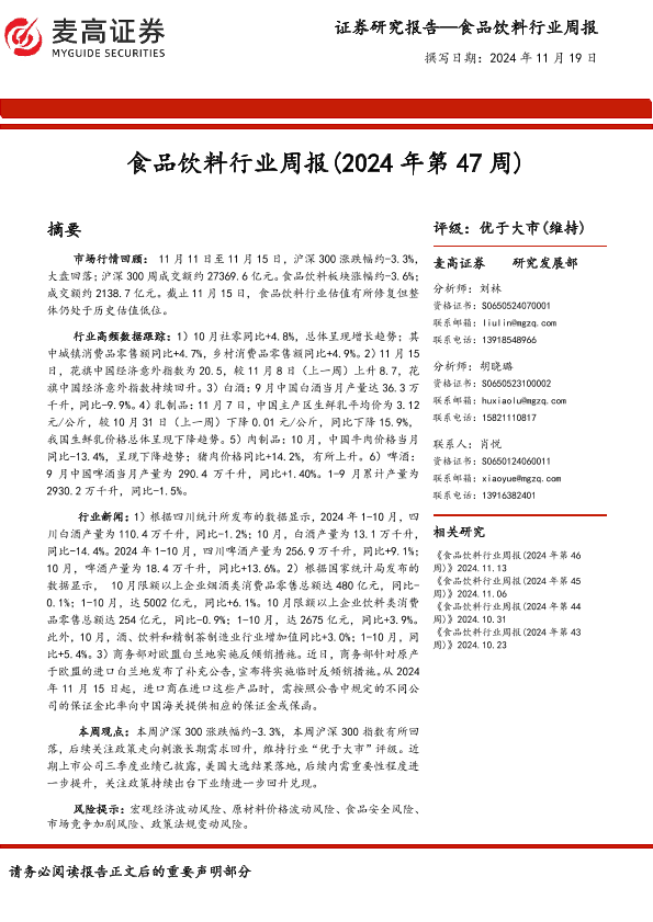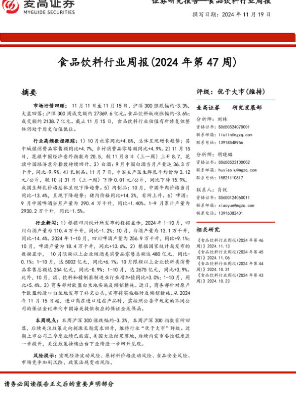【麦高证券】【20241119】食品饮料行业周报(2024年第47周)-13页