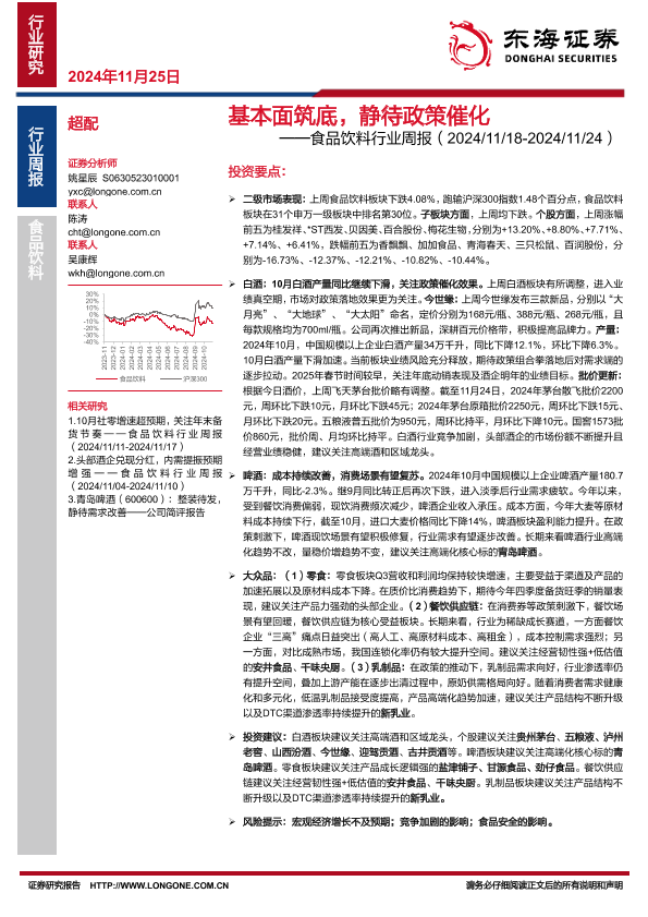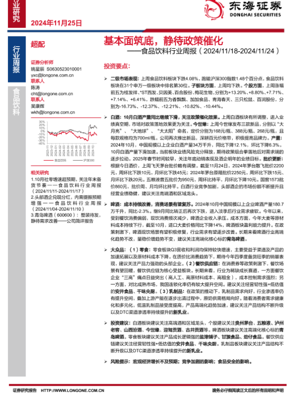 【东海证券】【20241125】20241125-东海证券-食品饮料行业周报:基本面筑底,静待政策催化-10页