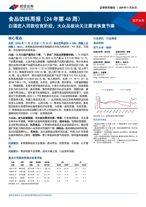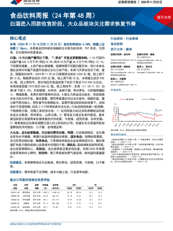 【国信证券】【20241125】20241125-国信证券-食品饮料行业周报(24年第48周):白酒进入回款收官阶段,大众品板块关注需求恢复节奏-16页