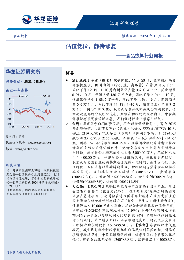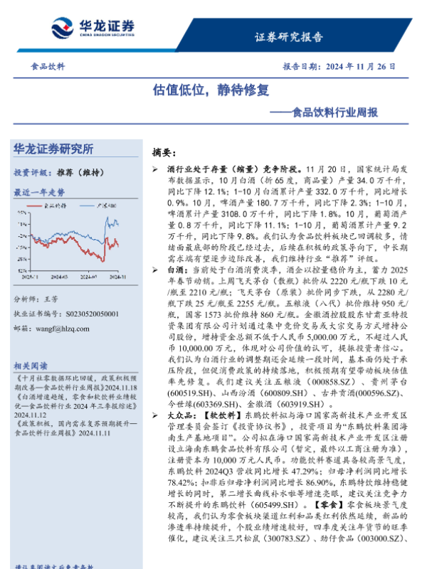 【华龙证券】【20241126】食品饮料行业周报:估值低位,静待修复-10页