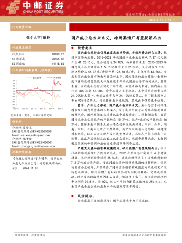 【中邮证券】【20241129】食品饮料深度报告:国产威士忌方兴未艾,崃州蒸馏厂有望脱颖而出-20页