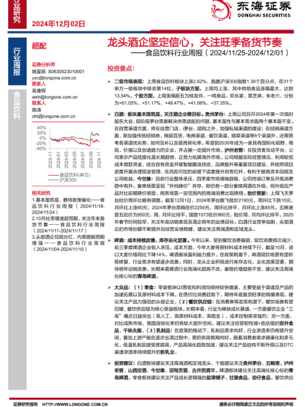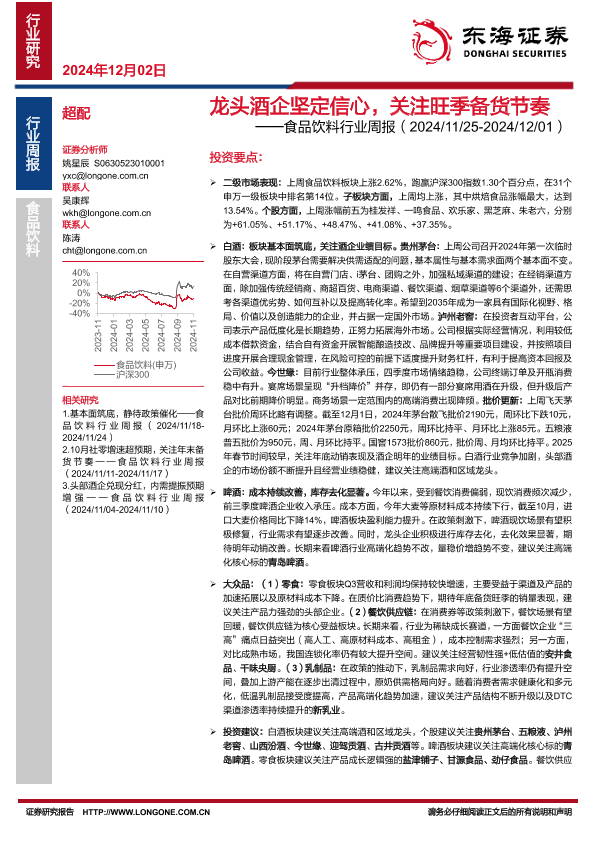【东海证券】【20241202】20241202-东海证券-食品饮料行业周报:龙头酒企坚定信心,关注旺季备货节奏-12页