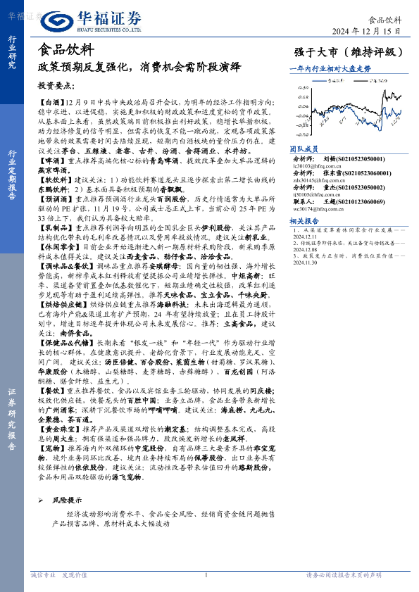 【华福证券】【20241215】食品饮料:政策预期反复强化,消费机会需阶段演绎-12页