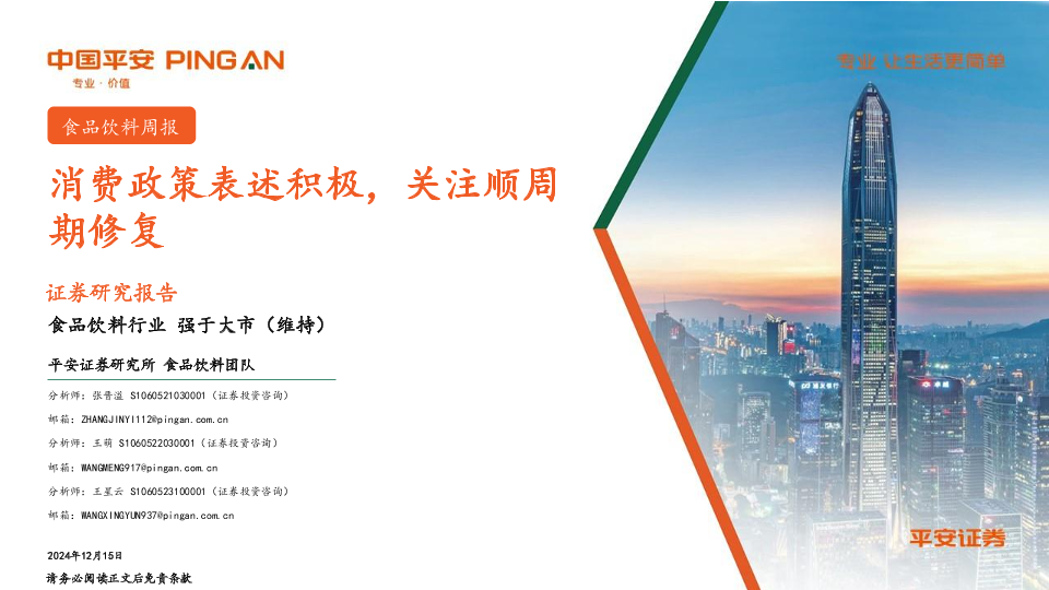 【平安证券】【20241215】20241215-平安证券-食品饮料行业周报:消费政策表述积极,关注顺周期修复-15页