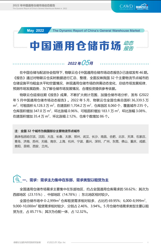 【物联云仓数字研究院】【202205】2022年5月中国通用仓储市场动态报告-11页