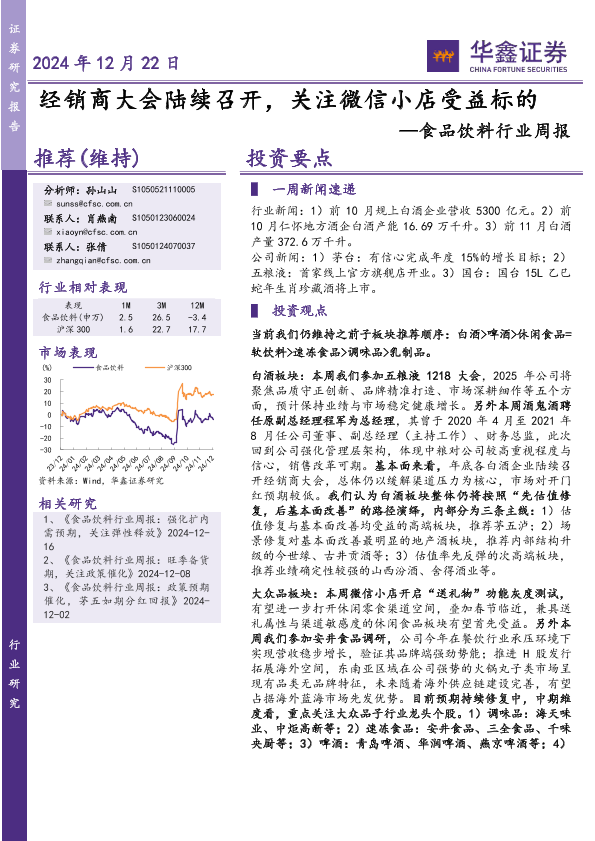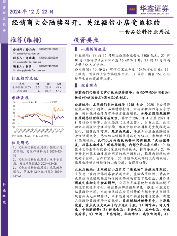 【华鑫证券】【20241222】食品饮料行业周报:经销商大会陆续召开,关注微信小店受益标的-19页