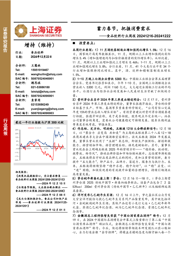【上海证券】【20241222】20241222-上海证券-食品饮料行业周报:蓄力春节,把握消费需求-22页