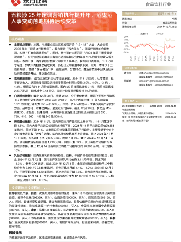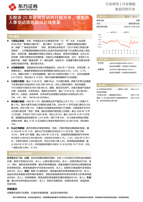 【东方证券】【20241223】20241223-东方证券-食品饮料行业行业周报:五粮液25年定调营销执行提升年,酒鬼酒人事变动落地期待后续变革-11页