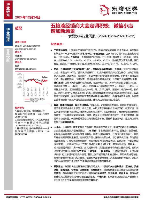 【东海证券】【20241224】20241224-东海证券-食品饮料行业周报:五粮液经销商大会定调积极,微信小店增加新场景-12页