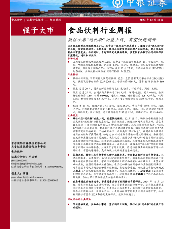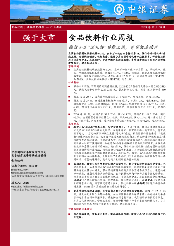 【中银证券】【20241230】20241230-中银证券-食品饮料行业周报:微信小店“送礼物”功能上线,有望快速铺开-16页