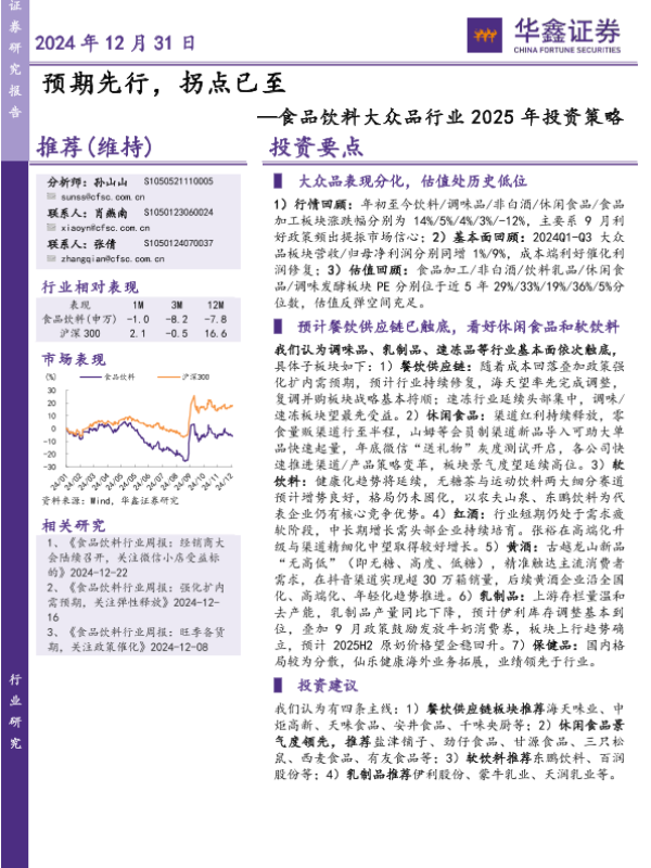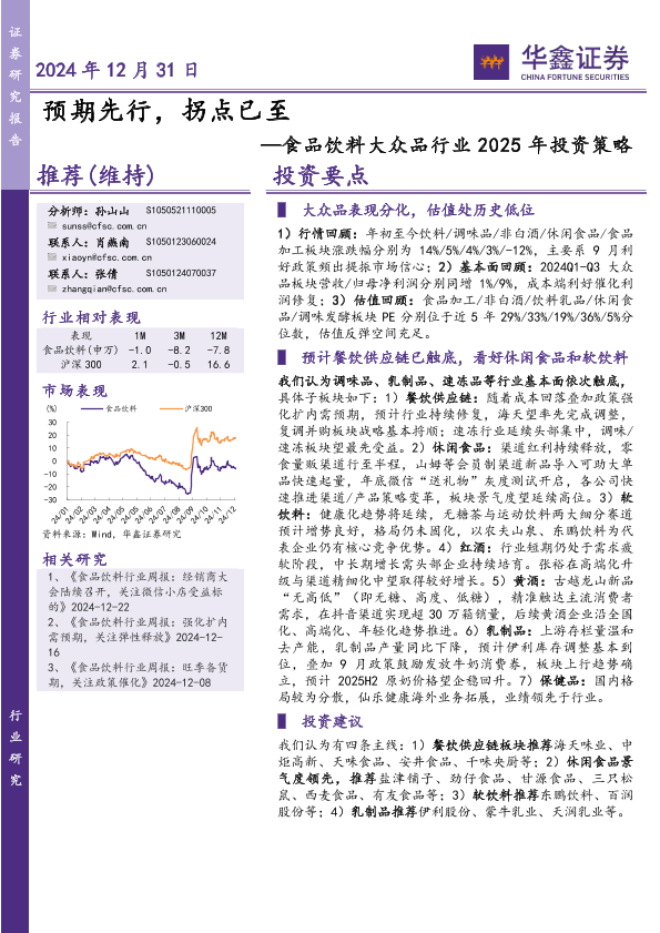 2025展望 大众品 市场分析 投资策略 食品饮料