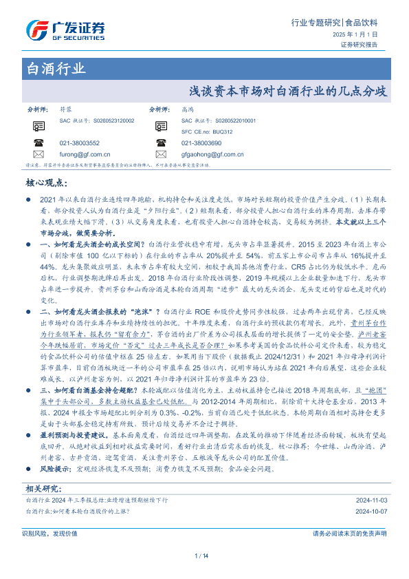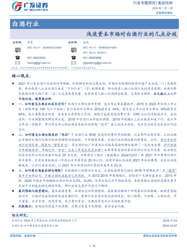 【广发证券】【20250101】20250101-广发证券-白酒行业:浅谈资本市场对白酒行业的几点分歧-14页