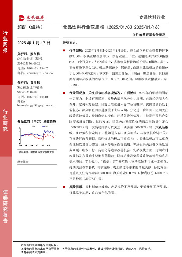 市场表现 春节备货 行业动态 风险提示 食品饮料
