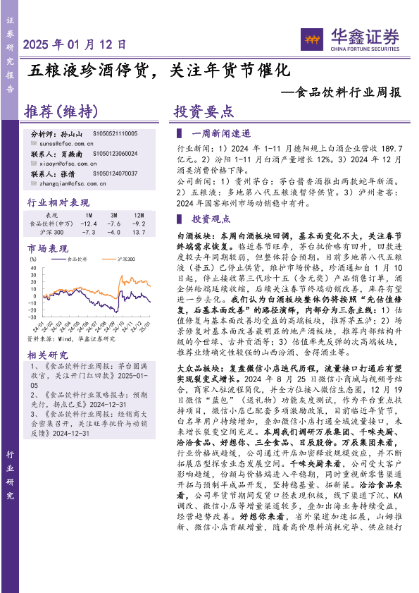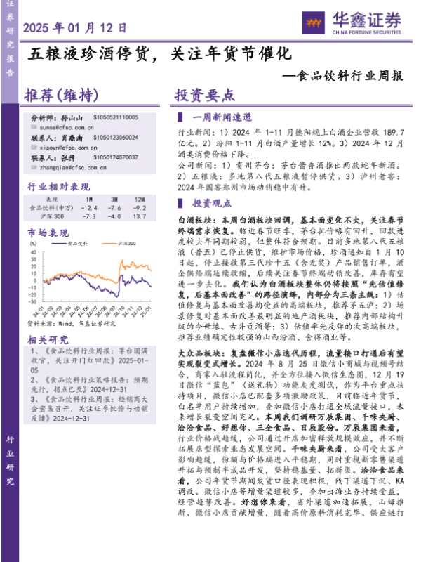 【华鑫证券】【20250112】20250112-华鑫证券-食品饮料行业周报:五粮液珍酒停货,关注年货节催化-19页
