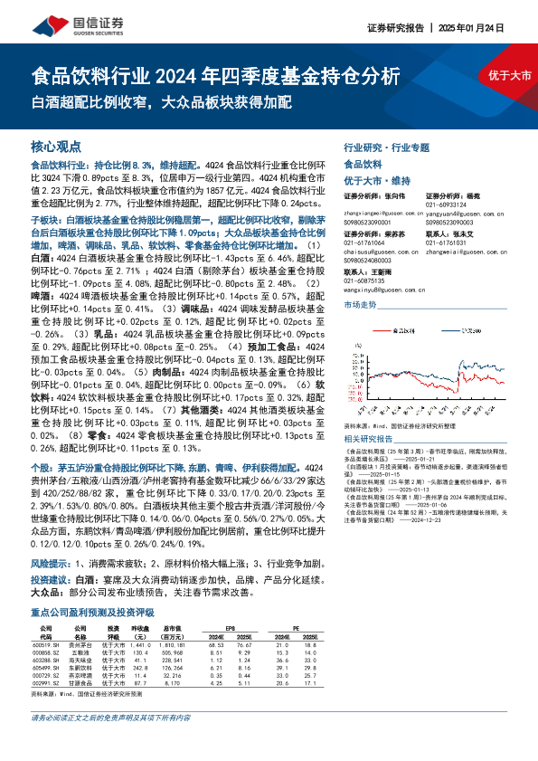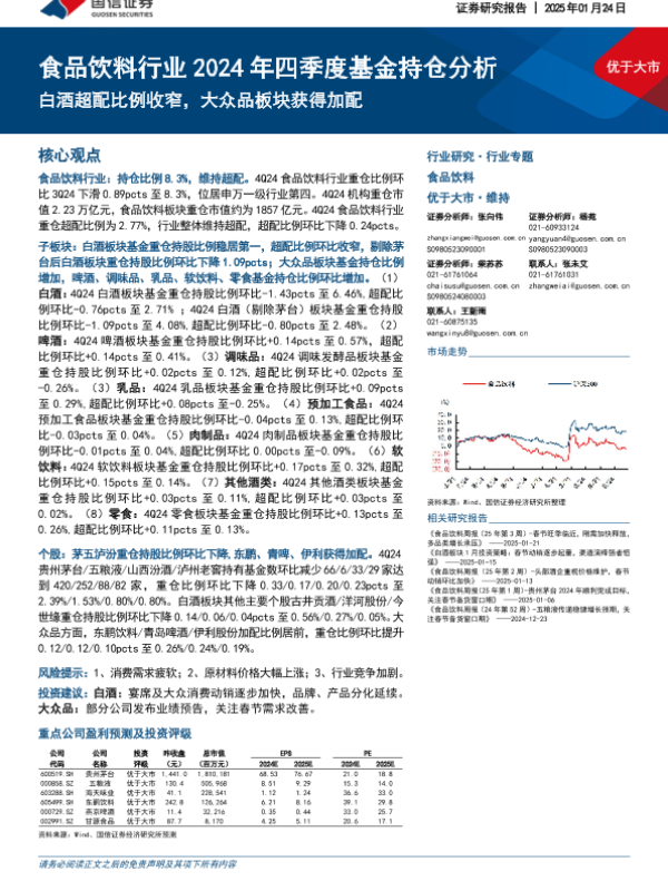【国信证券】【20250124】食品饮料行业2024年四季度基金持仓分析:白酒超配比例收窄,大众品板块获得加配-13页