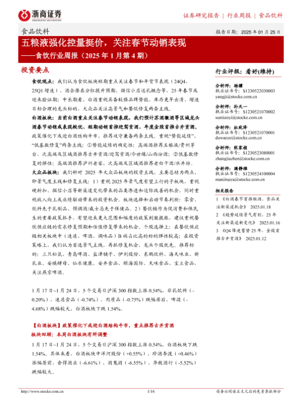 【浙商证券】【20250125】2025年1月第4期食饮行业周报:五粮液强化控量挺价,关注春节动销表现-16页