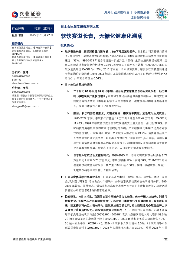 【兴业证券】【20250127】日本食饮深度报告系列之三:软饮赛道长青,无糖化健康化潮涌-22页