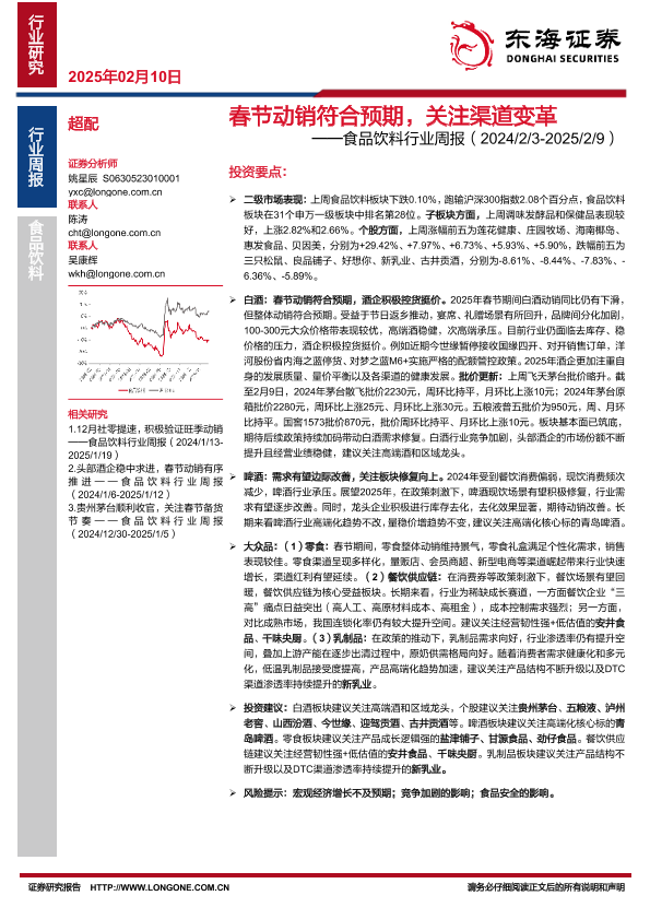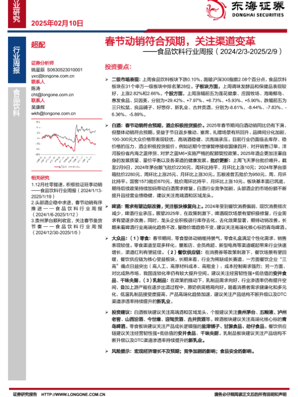 【东海证券】【20250210】20250210-东海证券-食品饮料行业周报:春节动销符合预期,关注渠道变革-10页