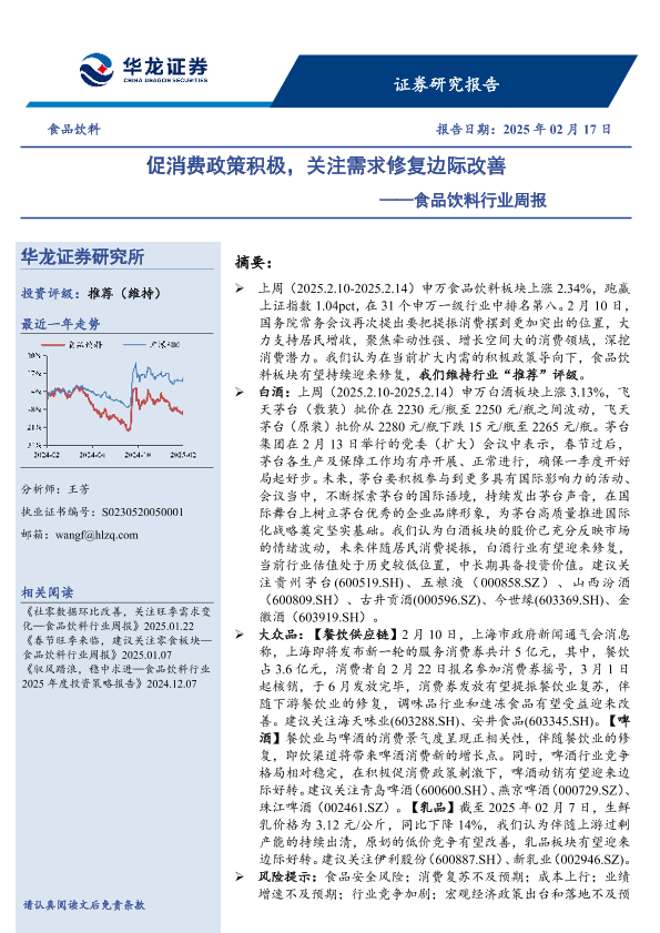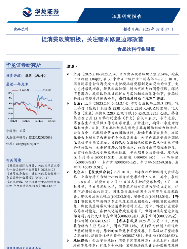 【华龙证券】【20250217】食品饮料行业周报:促消费政策积极,关注需求修复边际改善-11页
