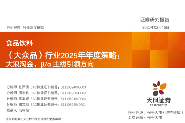 【天风证券】【20250216】食品饮料(大众品)行业2025年年度策略:大浪淘金,β α主线引领方向-46页