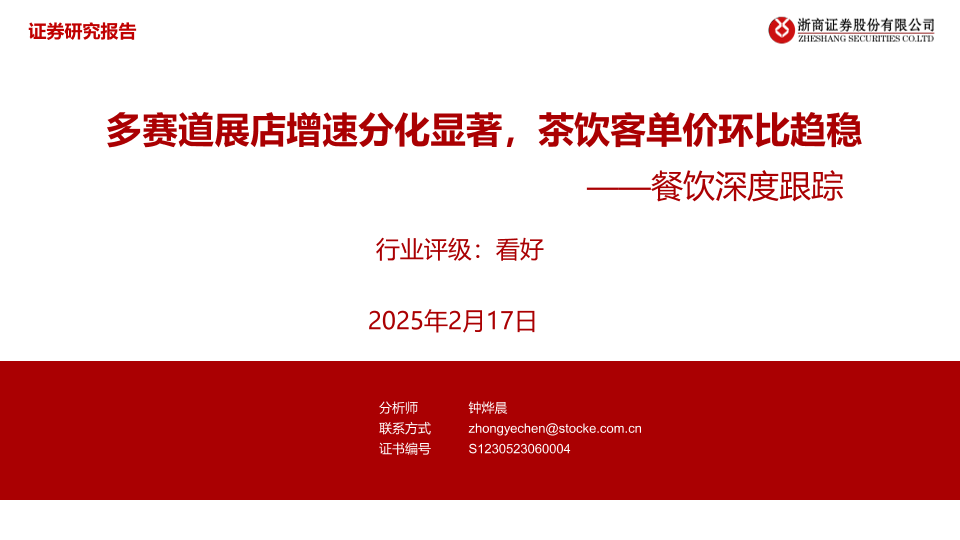 【浙商证券】【20250217】20250217-浙商证券-餐饮深度跟踪:多赛道展店增速分化显著,茶饮客单价环比趋稳-19页