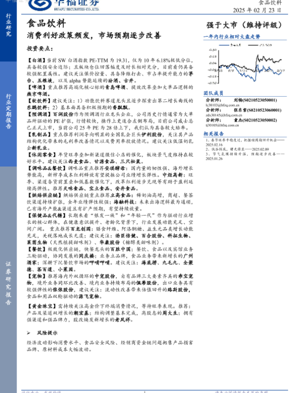 【华福证券】【20250223】20250223-华福证券-食品饮料行业定期报告:消费利好政策频发,市场预期逐步改善-12页