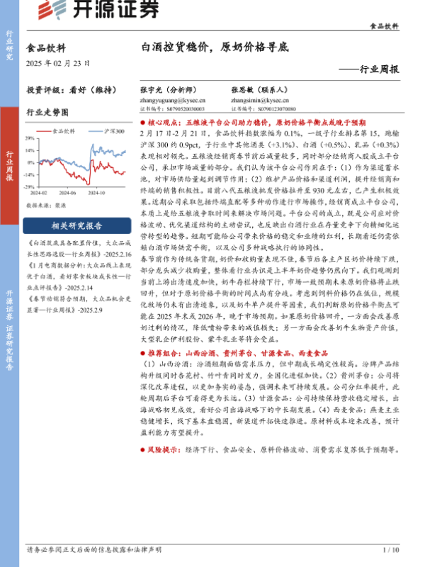 【开源证券】【20250223】白酒控货稳价,原奶价格寻底-10页