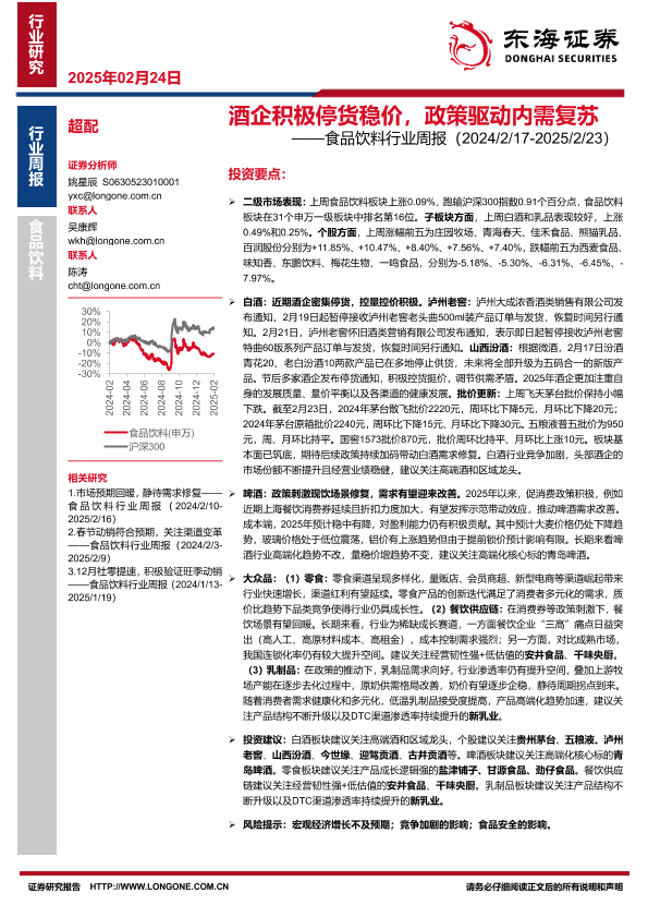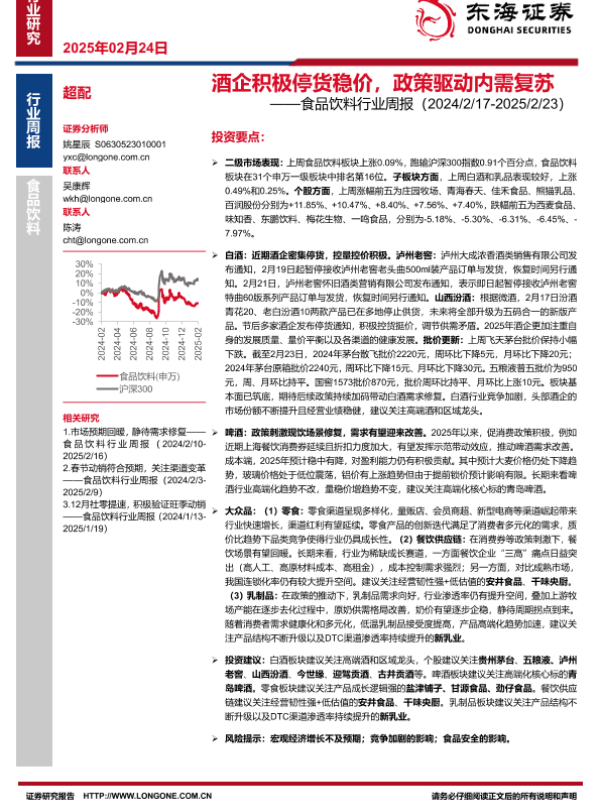 【东海证券】【20250224】20250224-东海证券-食品饮料行业周报:酒企积极停货稳价,政策驱动内需复苏-10页