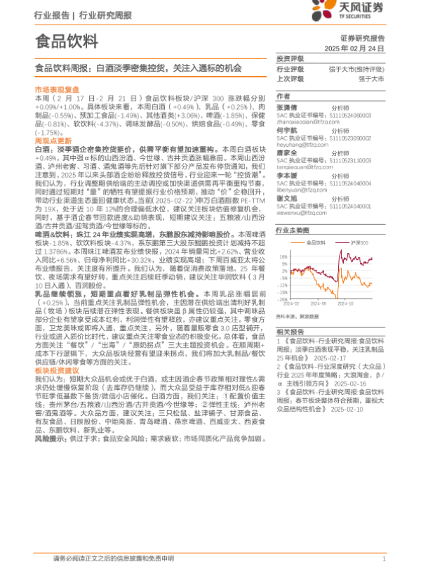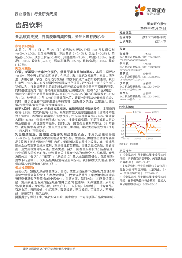 【天风证券】【20250224】食品饮料行业周报:白酒淡季密集控货,关注入通标的机会-21页