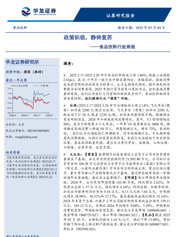 【华龙证券】【20250304】食品饮料行业周报:政策积极,静待复苏-11页