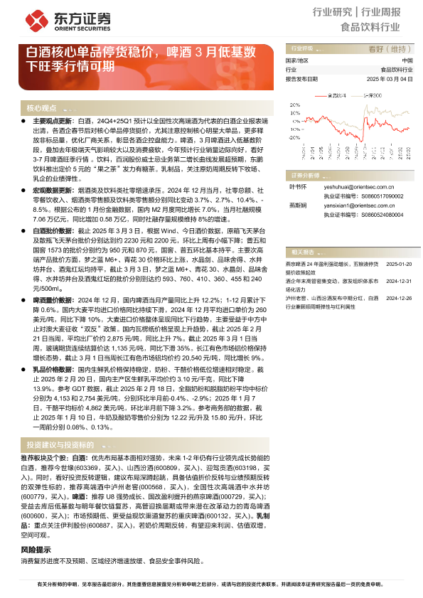 【东方证券】【20250304】20250304-东方证券-食品饮料行业周报:白酒核心单品停货稳价,啤酒3月低基数下旺季行情可期-11页