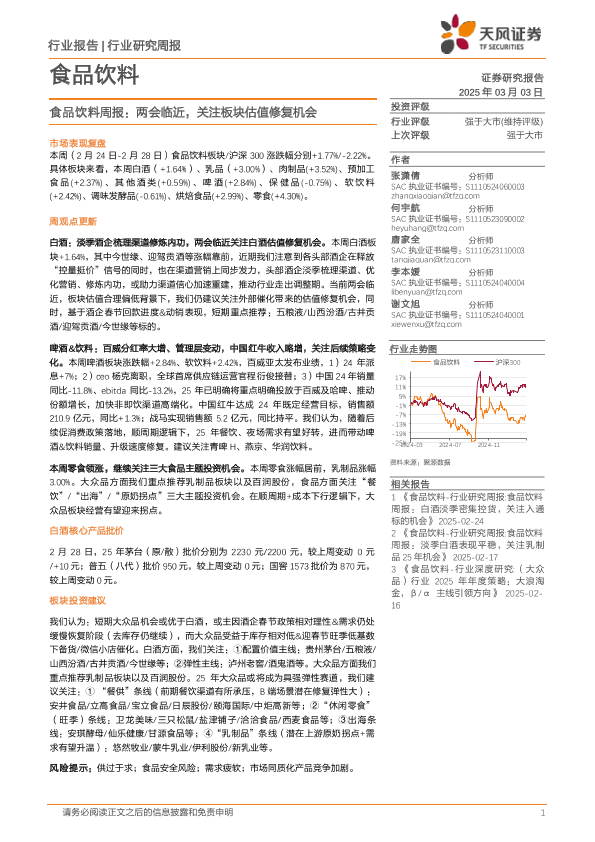 【天风证券】【20250303】食品饮料行业周报:两会临近,关注板块估值修复机会-16页