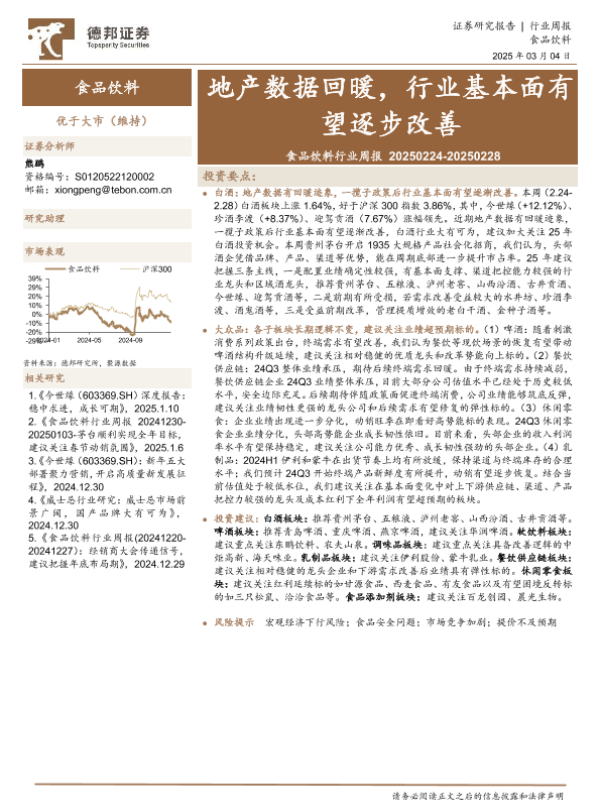 【德邦证券】【20250304】20250304-德邦证券-食品饮料行业周报:地产数据回暖,行业基本面有望逐步改善-14页