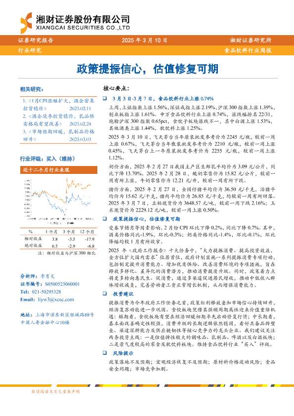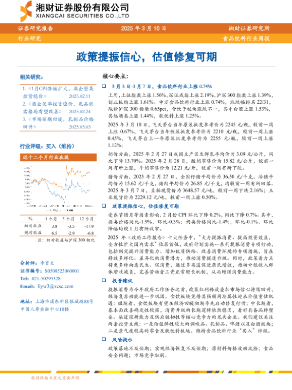 【湘财证券】【20250310】20250310-湘财证券-食品饮料行业周报:政策提振信心,估值修复可期-10页