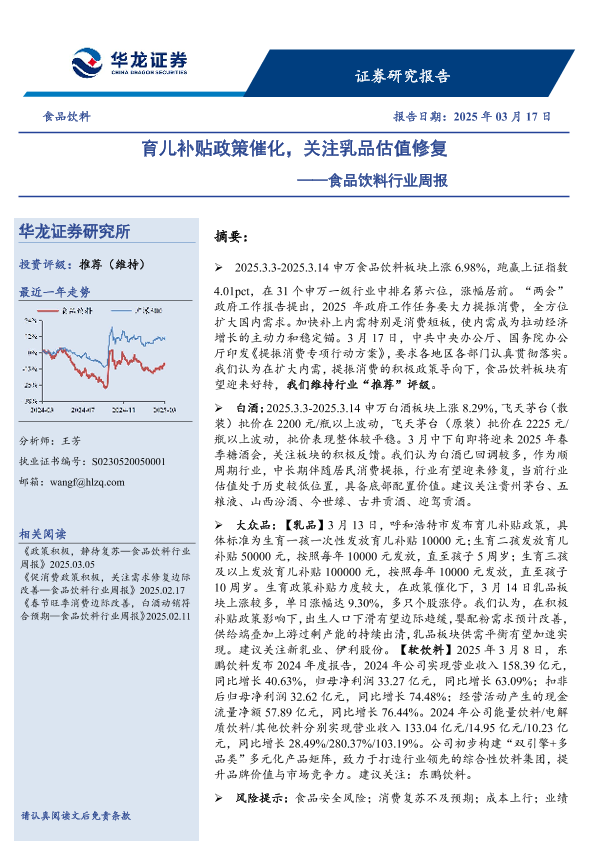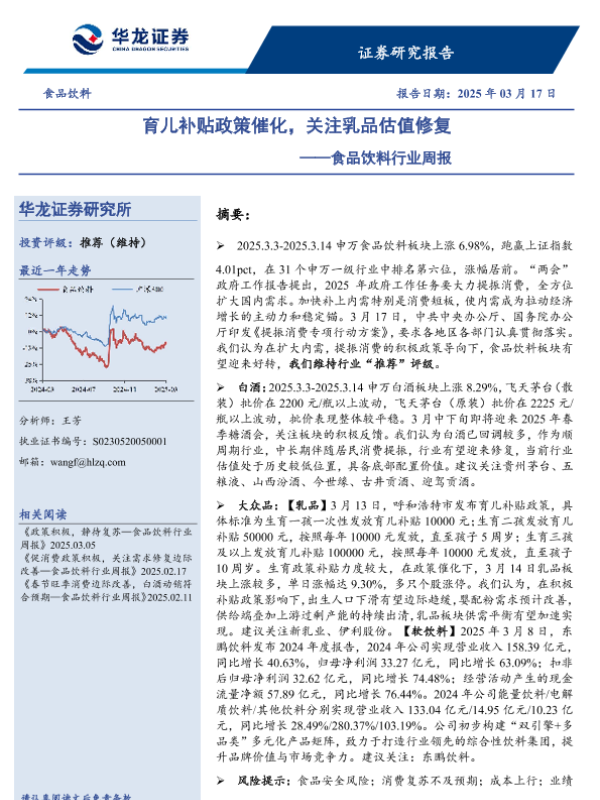 【华龙证券】【20250317】食品饮料行业周报:育儿补贴政策催化,关注乳品估值修复-11页