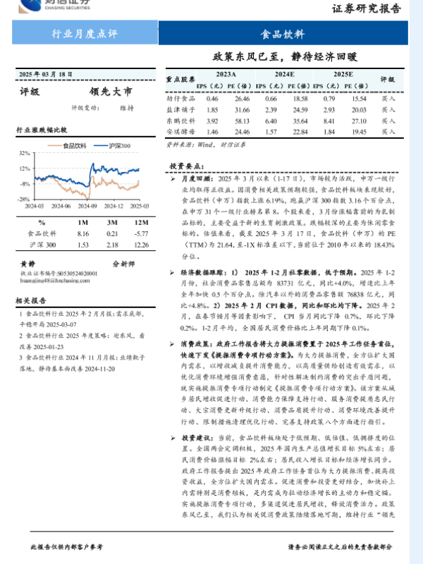 【财信证券】【20250318】财信证券-食品饮料行业月度点评:政策东风已至,静待经济回暖-15页